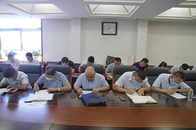 7月20日上午,各分公司生产经理、安全科科长共20余人,在公司三楼会议室或奋笔疾书、或凝神思考,正在紧张答题。这是公司七月份安全生产专题会考试环节的一幕。
